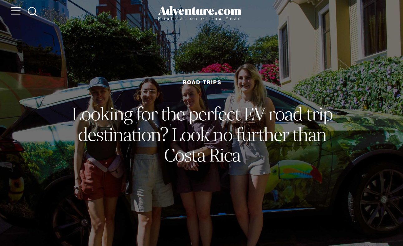 Costa Rica 15 Apr Written By Monica Meade Adventure.com Taking the long way round, Monica Meade takes Costa Rica’s rapidly developing—though sometimes unpredictable—nationwide EV charging infrastructure for a spin. 30 March - 15 April 2024 Monica Meade
